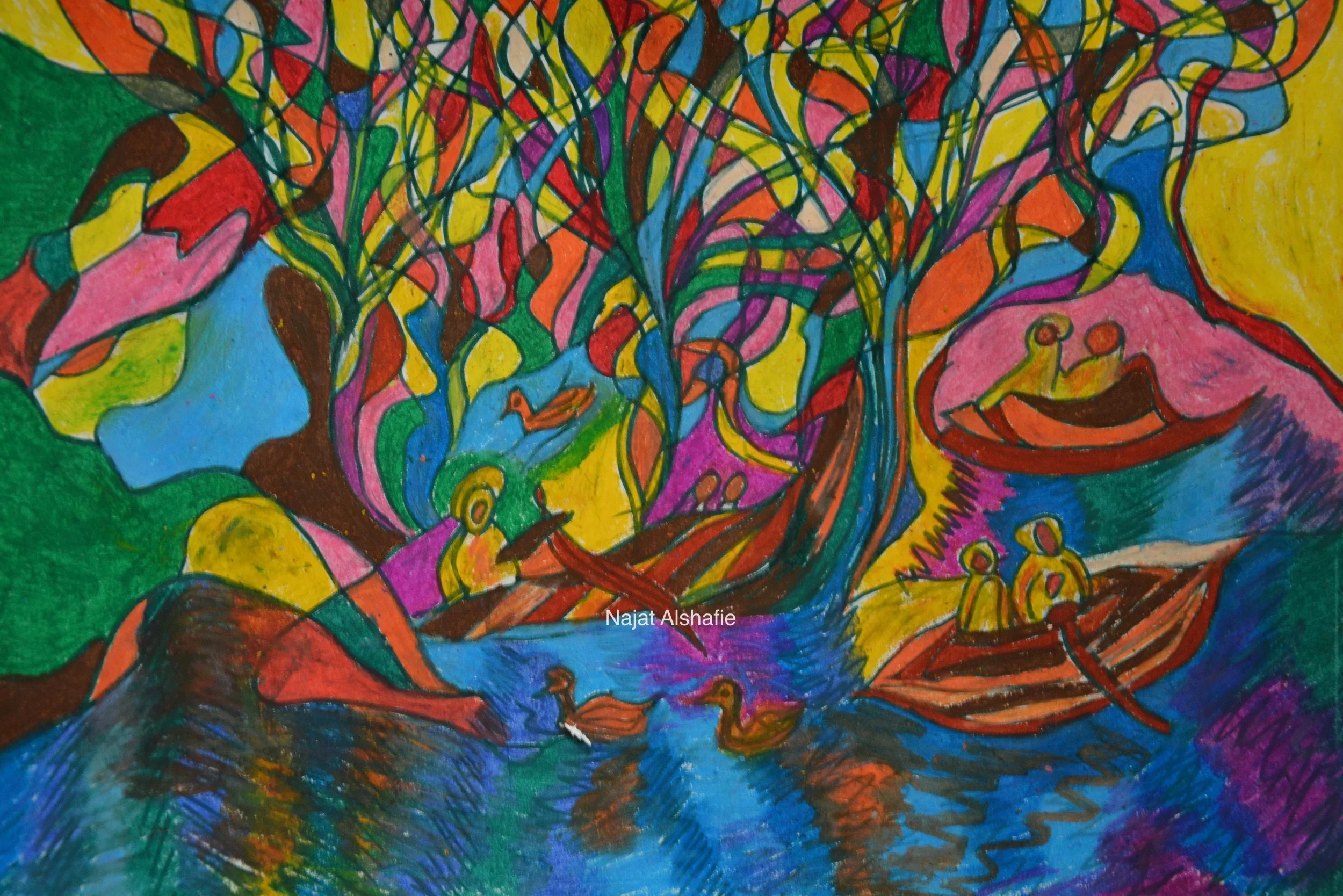 Drawing “A lake in a sunny day” by Najat Alshafie